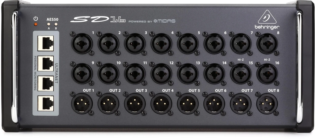 Представляємо Behringer SD16 – цифровий сценічний блок, який перетворює процес звукової роботи на справжнє задоволення. З цим пристроєм ви зможете значно покращити комунікацію між вашою групою, звукорежисером та аудиторією, завдяки 16 дистанційно керованим підсилювачам Midas та 8 аналоговим серво-збалансованим XLR-поверненням.